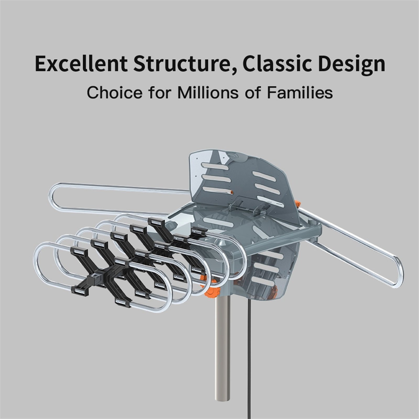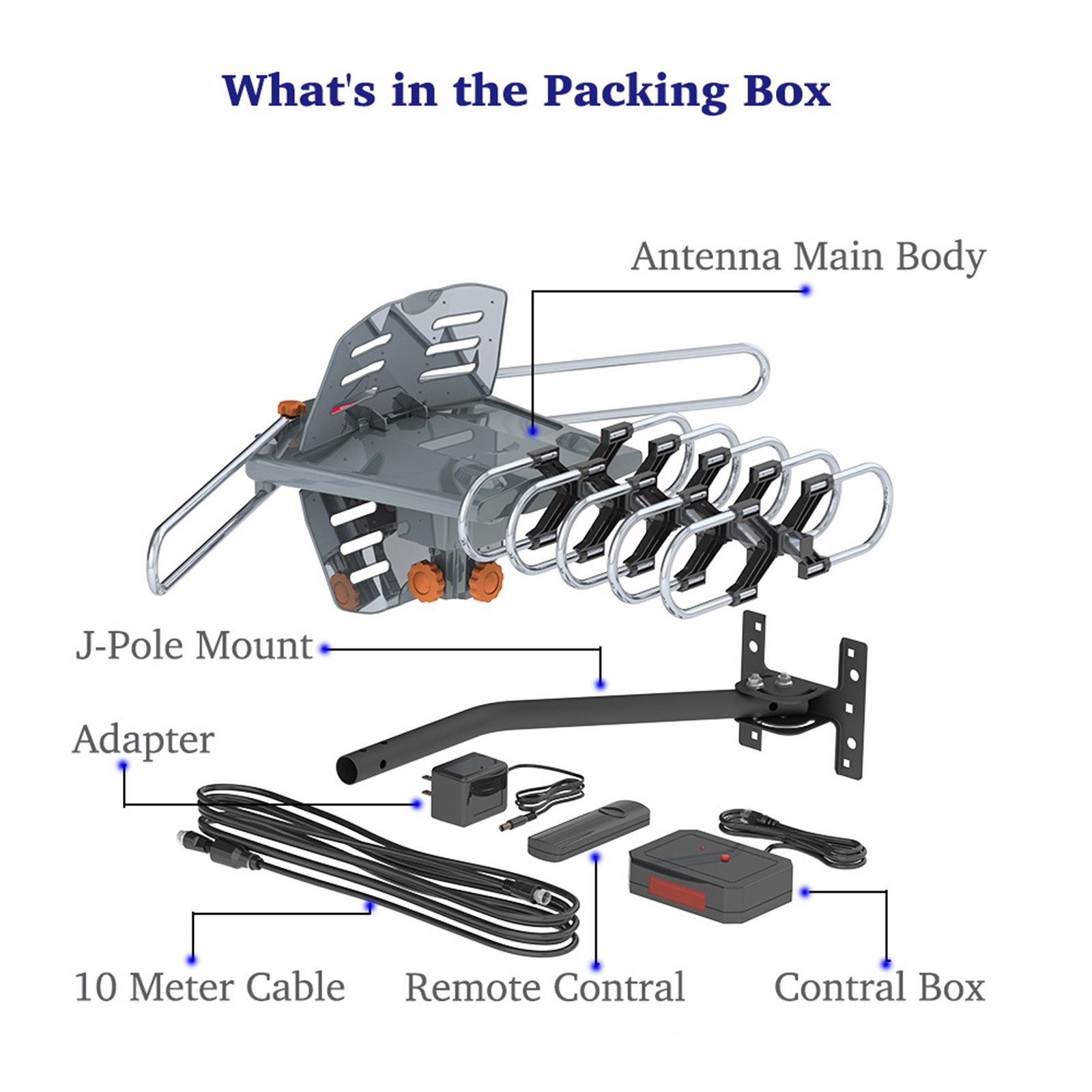 Introductions:You are in the right place! This 28-36dB 360° UV Dual-band Outdoor Antenna with Stand is a best choice for you. It is made of high quality material and advanced technology. It is of great connection, great tool, easy to operate. This outdoor antenna also has small size so that it's easy to be fitted with your device. The build is sturdy durable and environmental friendly. It is ideal tool for sending and receiving signal. It is really a good choice for you! What are you still waiting for?Features:1. It is made of high quality and durable material2. Lightweight, compact and easy to carry3. Portable and easy to use4. Best match for your device5. Environmental friendly6. Great connection, easy to operate and installSpecifications:1. Max Rotation: 360 Degrees2. Working Frequency: VHF 40~300MHz/UHF 470~860MHz3. Noise Figure: ≤2.5dB4. Typical Antenna Gain: VHF 28~32dB/UHF 32~36dB5. Reception Range: 150 Miles6. Channels: 1~697. Impedance: 75Ohm8. Max Output Level: 105dB uV9. Main Voltage: AC-110V/60Hz10. Power: AC15V 300mA/3W11. Rotor Motor Input: AC15~19V12. Operation Temperature: -10℃~50℃13. Color: Black14. Weight: 70.55oz / 2000g15. Type: TV AntennaPackage Includes:1 x Rotor1 x Main Unit1 x Coaxial Cable 33 ft1 x Boom5 x Directors14 x Screws1 x Power Box (US Plug)1 x Remote Controller1 x Pole1 x Instruction Manual