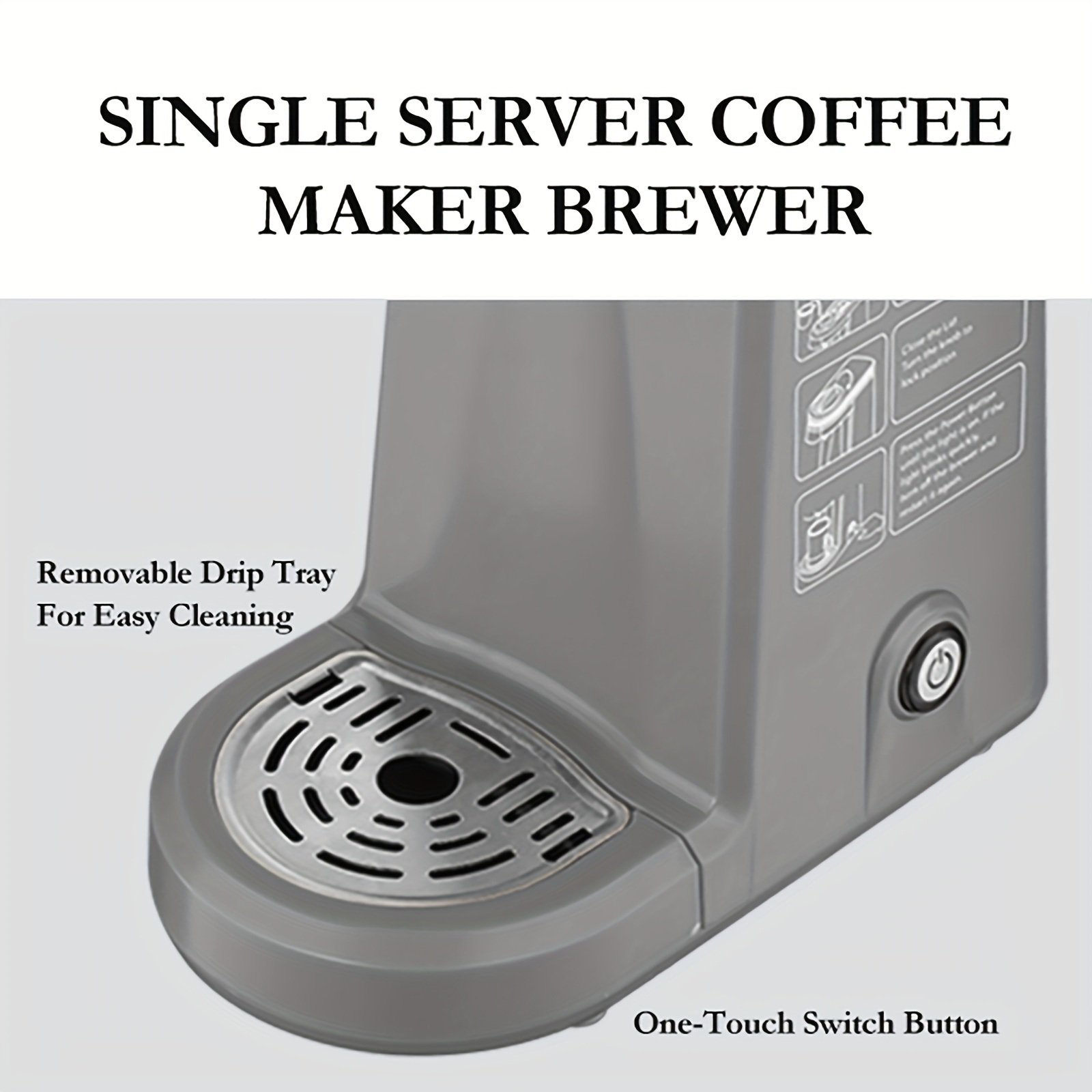 4, (BUILT-IN RESERVOIR + DETACHABLE DRIP TRAY)The water amount you pour equal to coffee amount that flows out,ensure every fresh cup.Without any mess.The single brewer supports for standard size,or by removing drip tray for large size mug (up to 5.3" height).