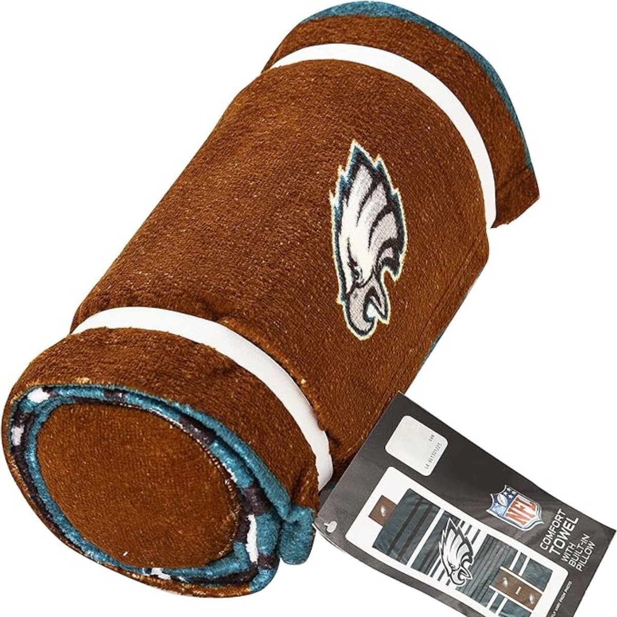 Lay down comfortably on the sand or by the pool with an Officially Licensed NFL "Lateral" Comfort Towel with Foam Pillow by TheNorthwest. This soft and absorbent 32"x 64" towel; featuring your football team's logo and a football design; comes attached to a 4.5" x 13" foam pillow to lay your head on. Once you're done using the towel set; roll it up and secure it with the elastic bands. After a long beach or pool day; simply remove the foam pillow from the zipper closure for easy washing!