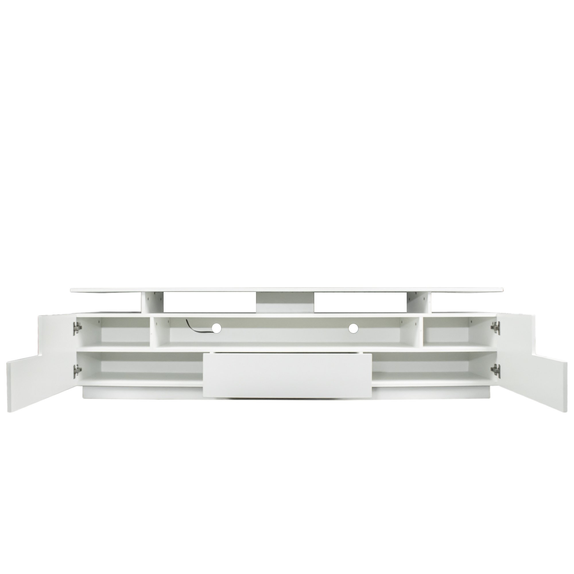 Modern White TV Stand; 20 Colors LED TV Stand w/Remote Control Lights