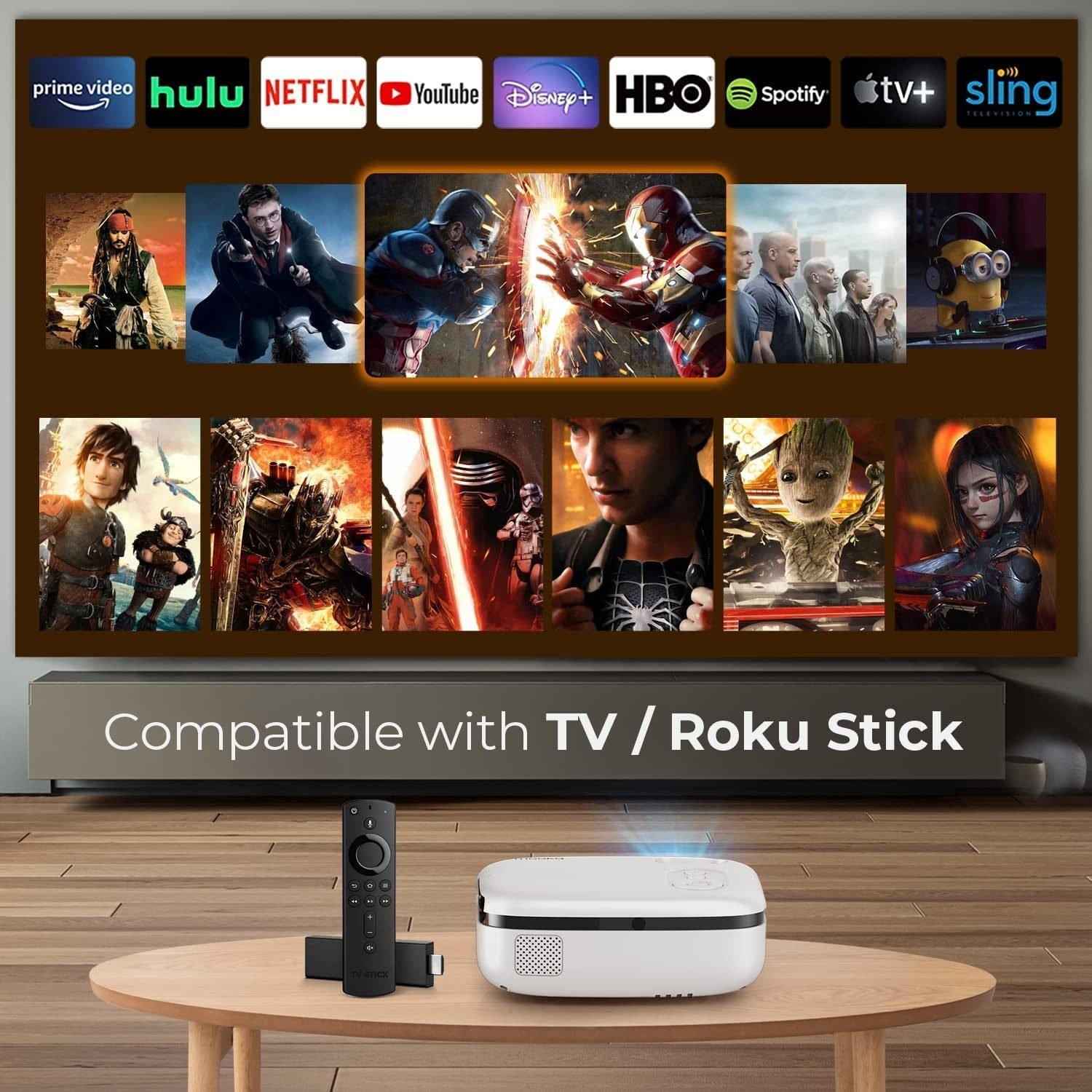 portable WiFi Projector is the perfect way to get a movie theater experience at home. The latest integrated WiFi connection technology allows you to synchronize your smartphone screen with the projector.