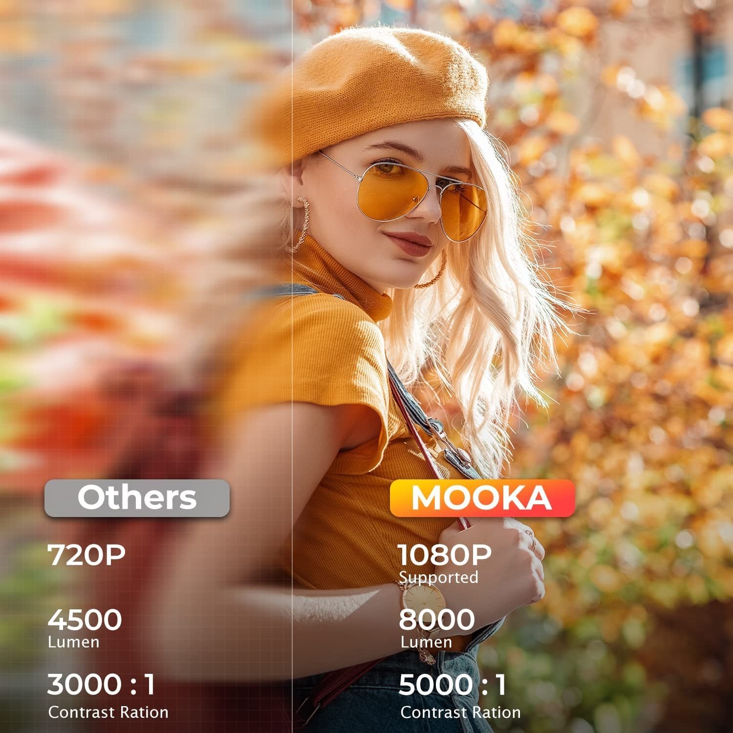 We know how the lack of brightness tires your eyes quickly, thus a portable video projector has a high brightness of 7500 lumens. Moreover, it utilizes bright eye protection LED light source, LCD display technology and supports 1080P resolution.
