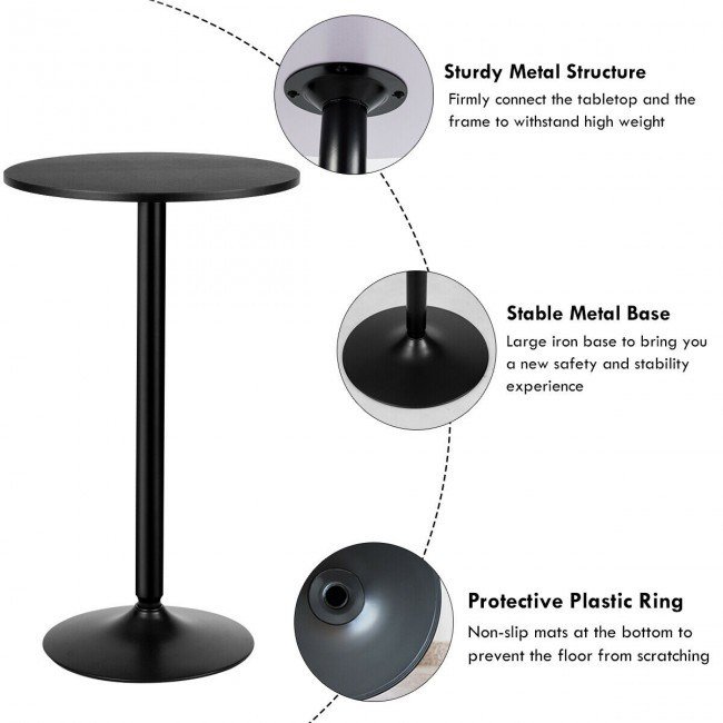 3.This heavy-duty table is supported by a solid iron rod and a wide base to ensure reliability and long-lasting use. In addition to the non-slip ring at the bottom, the bar table is added for extra stability that can carry up to a maximum of 265 lbs.