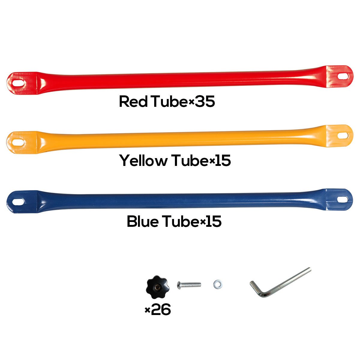 Long tube, red: 66.5cm, 35 pieces. Short tube: 58.5cm, yellow, 15 pieces, blue, 15 pieces.