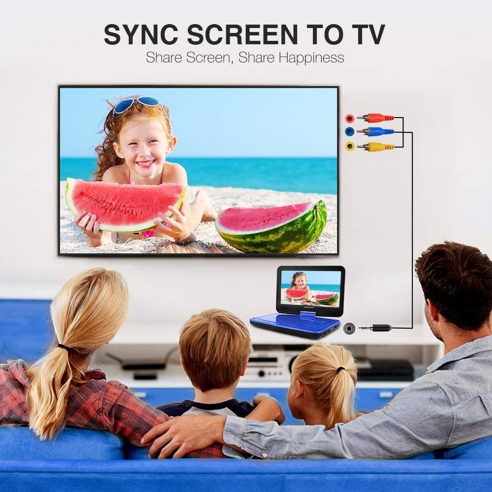 4.MULTIPLE WAYS TO PLAY - Need it bigger? The AV output allow it to be connected to a TV for you to enjoy for favorite movies on a big screen. Two like DVD players can also be connected by an AV to AV cable so that the same movie can be watched on two players at the same time.