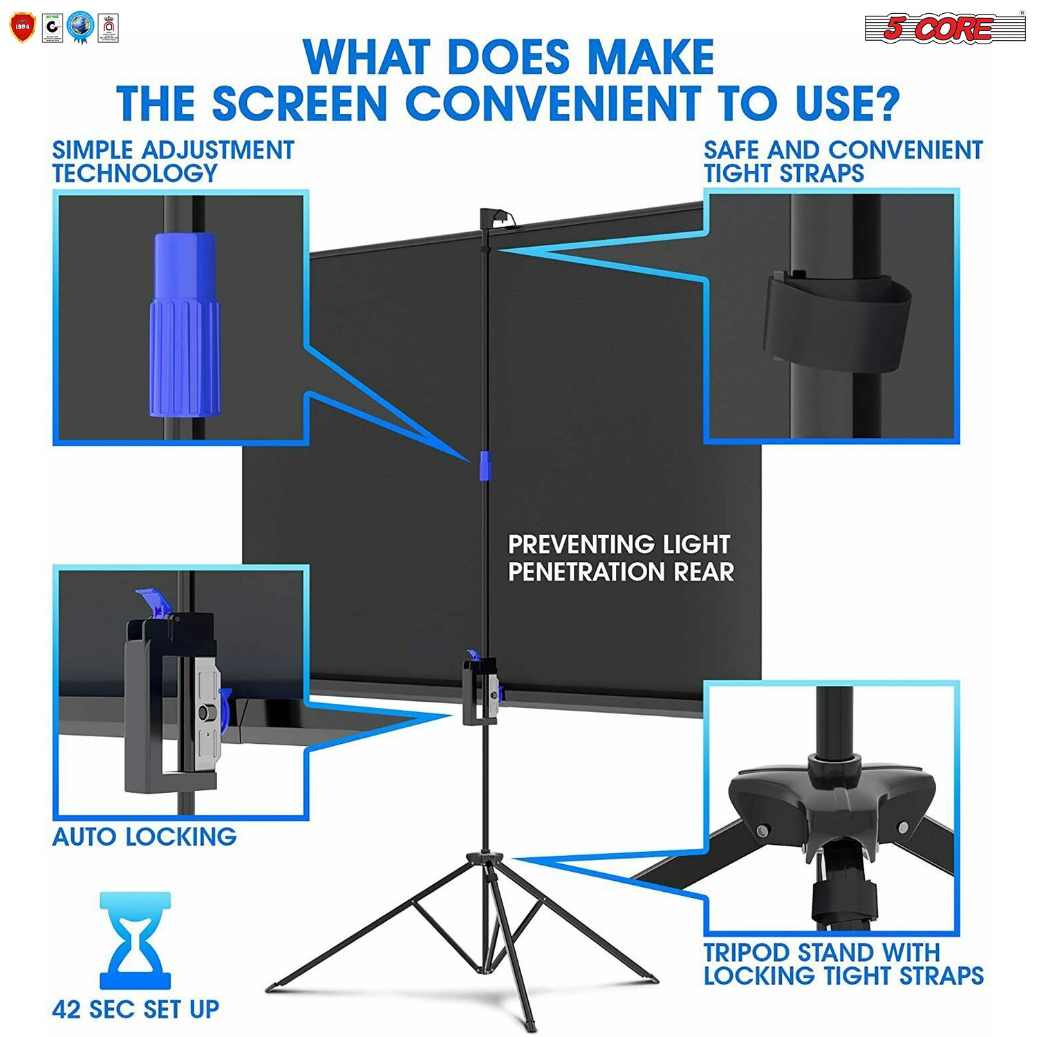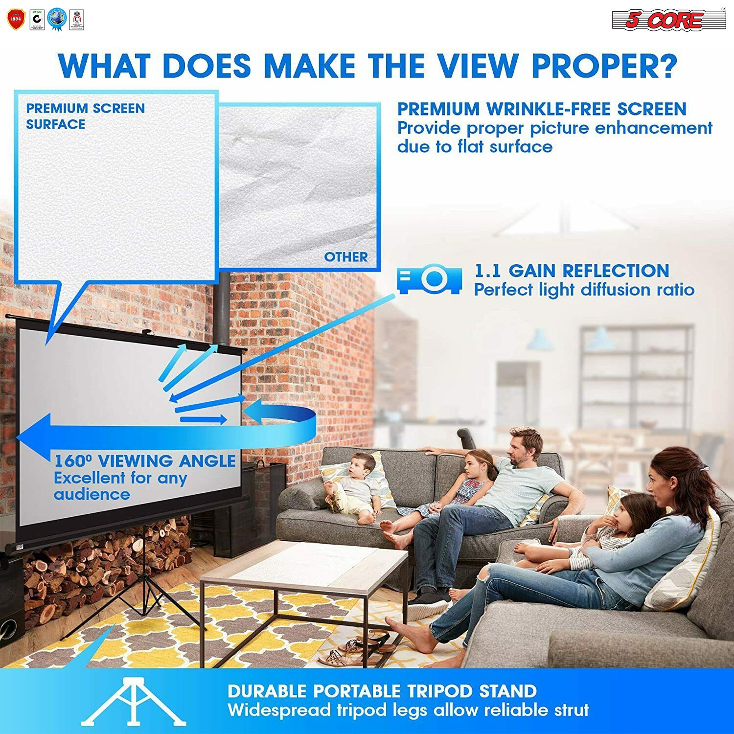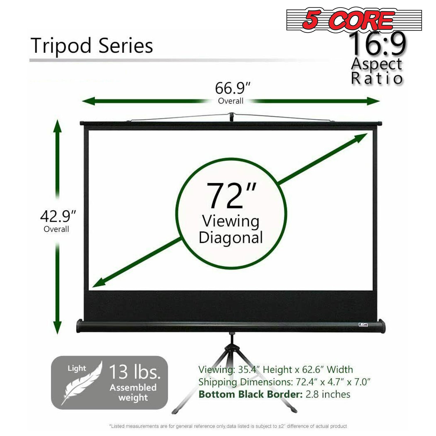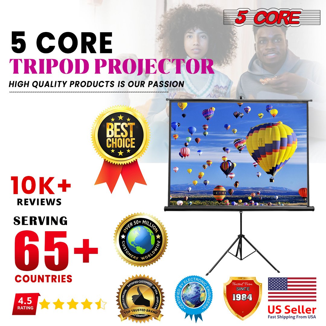 | 5 Core 72 Inch Projector Screen Pull Down 8K 3D Ultra HD 16:9 Outdoor Indoor | 5 Core 72 Inch Tripod Projector Screens 4:3 Indoor Outdoor 8K Ultra HD 3D | 5 Core 72 Inch AUTO Motorized Projector Screen Remote Control Ultra HD 16:9 | 5 Core 84 Inch Pull Down Tripod Projector Screen 8K 3D Ultra HD 4:3 / 16:9M | |