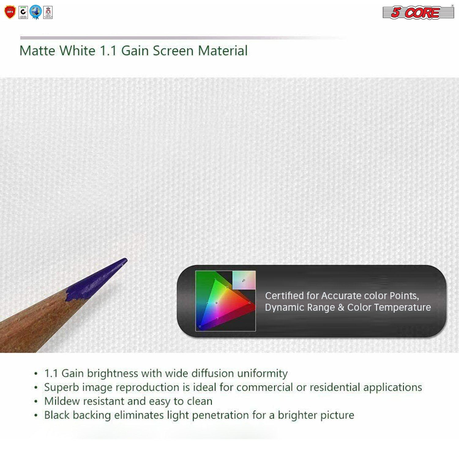 Bring the movie theater experience to your home with our 72 inch projector screen! Featuring a matte white surface and black border frame, this retractable projector screen provides impeccable color balance and realistic picture, with wide off-axis viewing that ensures every seat is the best seat! At 5 Core, Customer satisfaction is our priority—a proven track record of delivering the highest quality product since 1984. |