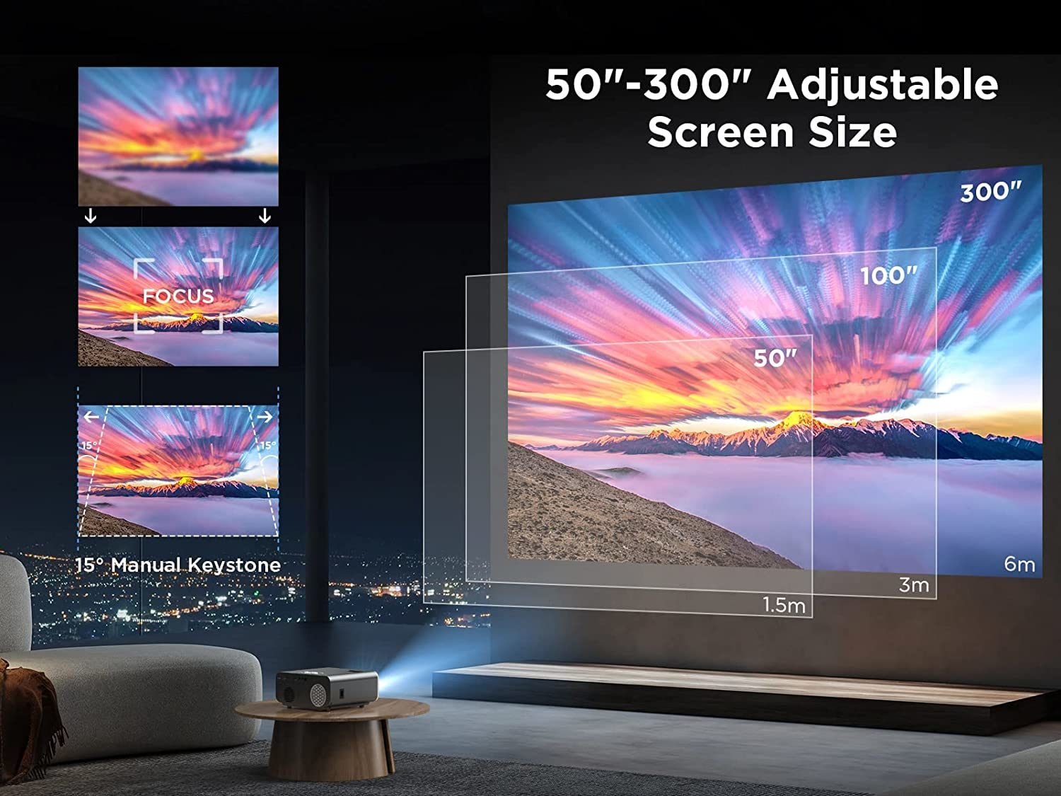 2.2.4G+5G WiFi & 300" Giant Screen & 75% Zoom:Combining the characteristics of good penetration of 2G WiFi and long transmission distance of 5G WiFi, C12 can solve the problem of network instability perfectly. Even outdoors without WiFi, C12 still can achieve a high quality playback by fast 2.4G+5G WiFi. Portable C12 projector offers 50"-300" projection size by adjusting the distance between 1.5m-6m. 75%-100% zoom function let you get the best viewing effect without moving the projector
