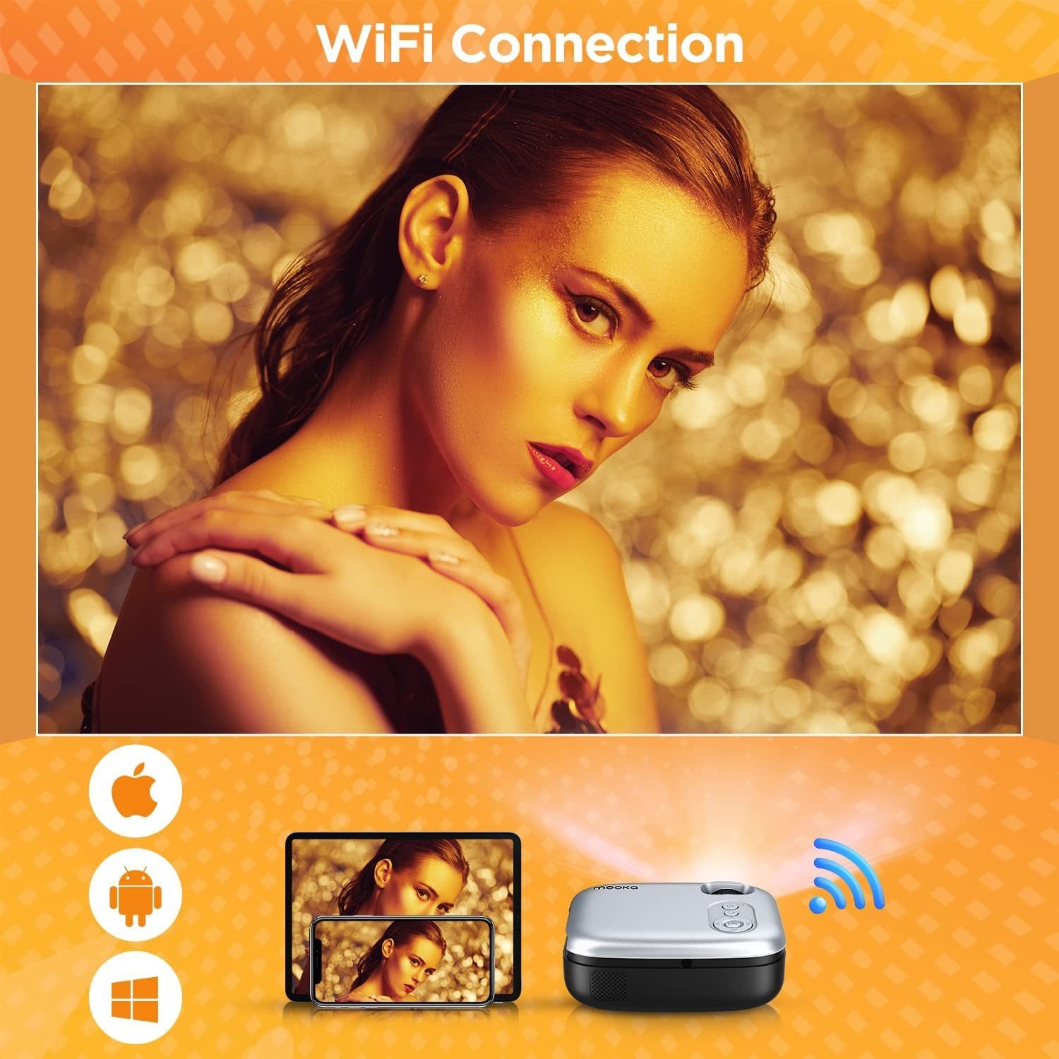 1.FAST & STABLE WIFI CONNECTION:Phone projector, designed with the latest Wifi connection which is compatible with the Android and IOS system, compare with the other small projectors in the market, we increase the loading speed by 35% to bring you a faster and more stable playback experience. No expensive adapter needed, you can connect the projector to your phone with an original cable line easily
