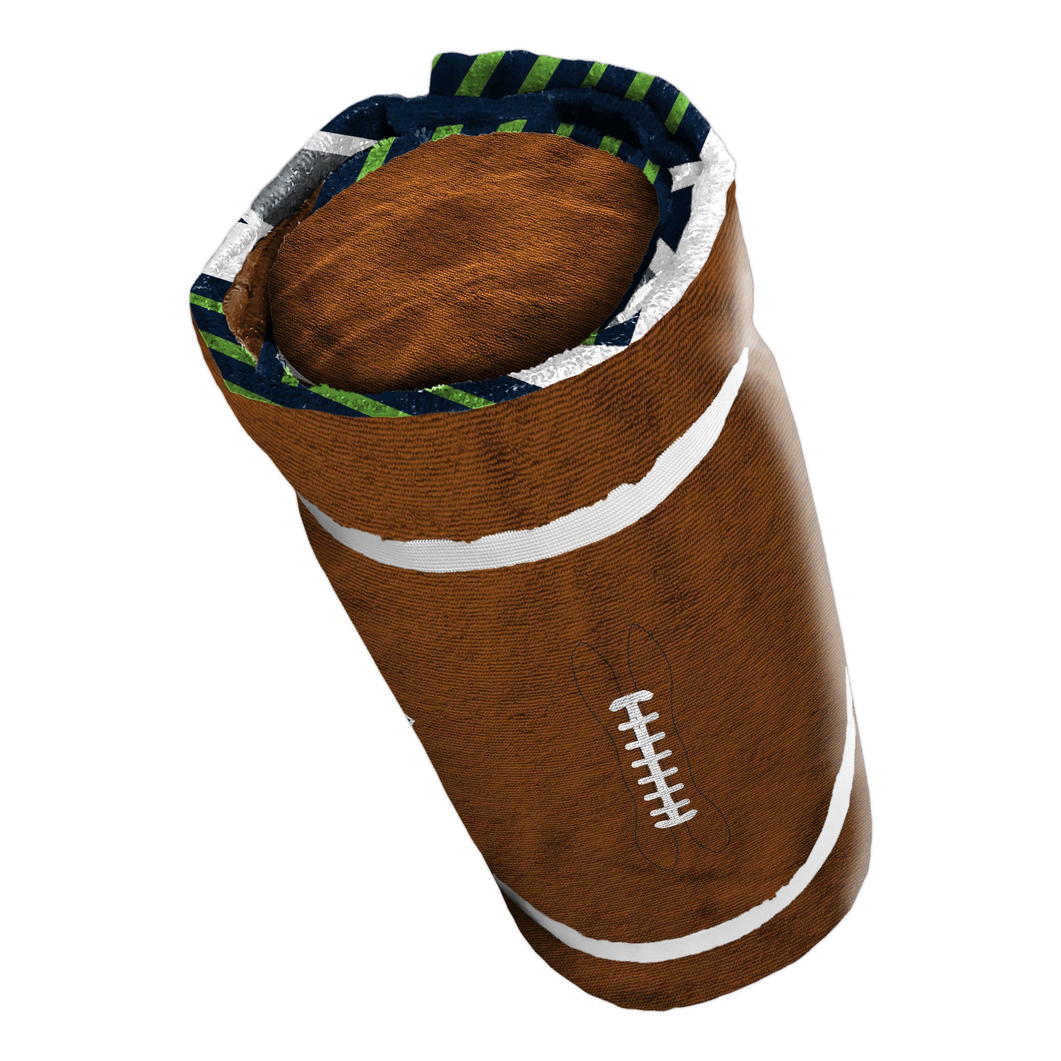 Lay down comfortably on the sand or by the pool with an Officially Licensed NFL "Lateral" Comfort Towel with Foam Pillow by TheNorthwest. This soft and absorbent 32"x 64" towel; featuring your football team's logo and a football design; comes attached to a 4.5" x 13" foam pillow to lay your head on. Once you're done using the towel set; roll it up and secure it with the elastic bands. After a long beach or pool day; simply remove the foam pillow from the zipper closure for easy washing!