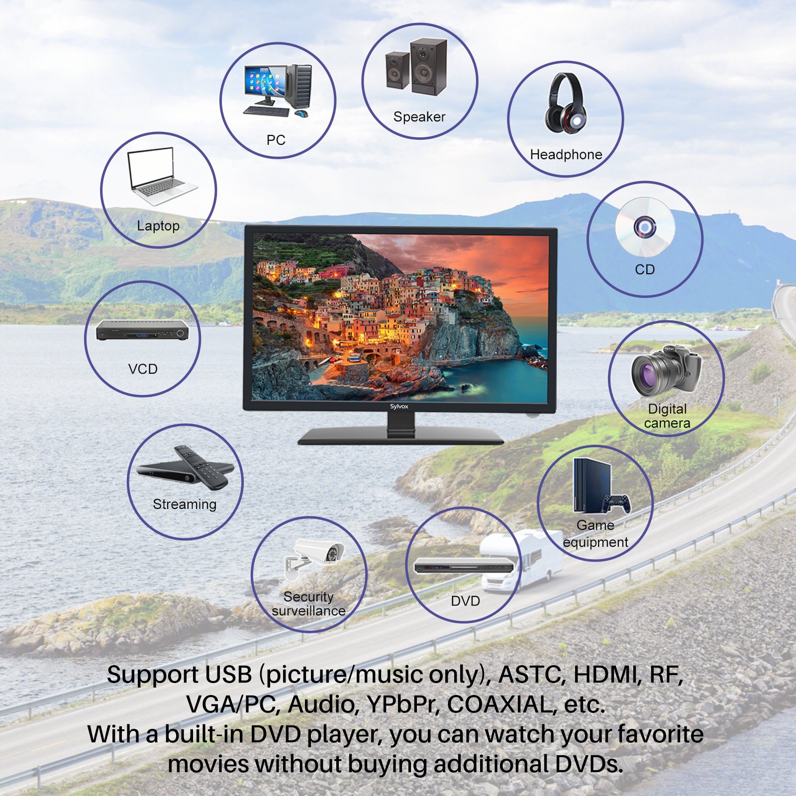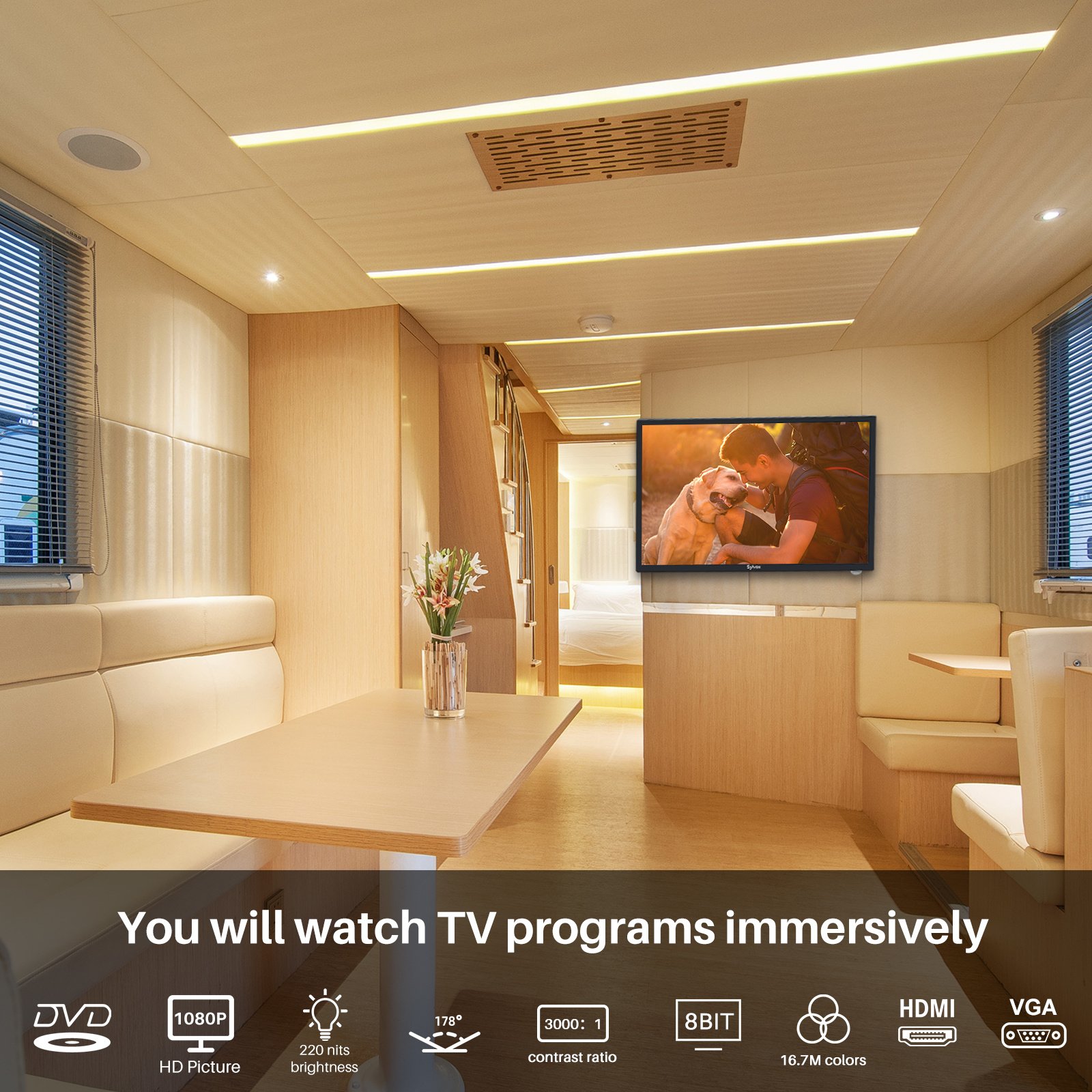 Home > SYLVOX 27 inch RV TV; 12 Volt TV DC Powered 1080P FHD Television Built in ATSC Tuner; FM Radio; DVD; with HDMI/USB/VGA Input; TV for Motorhome;