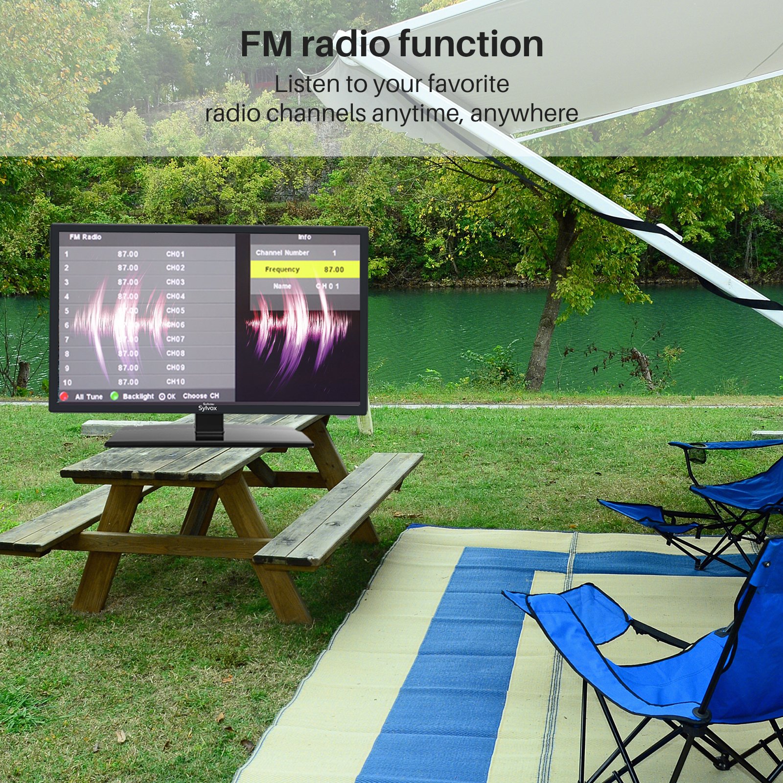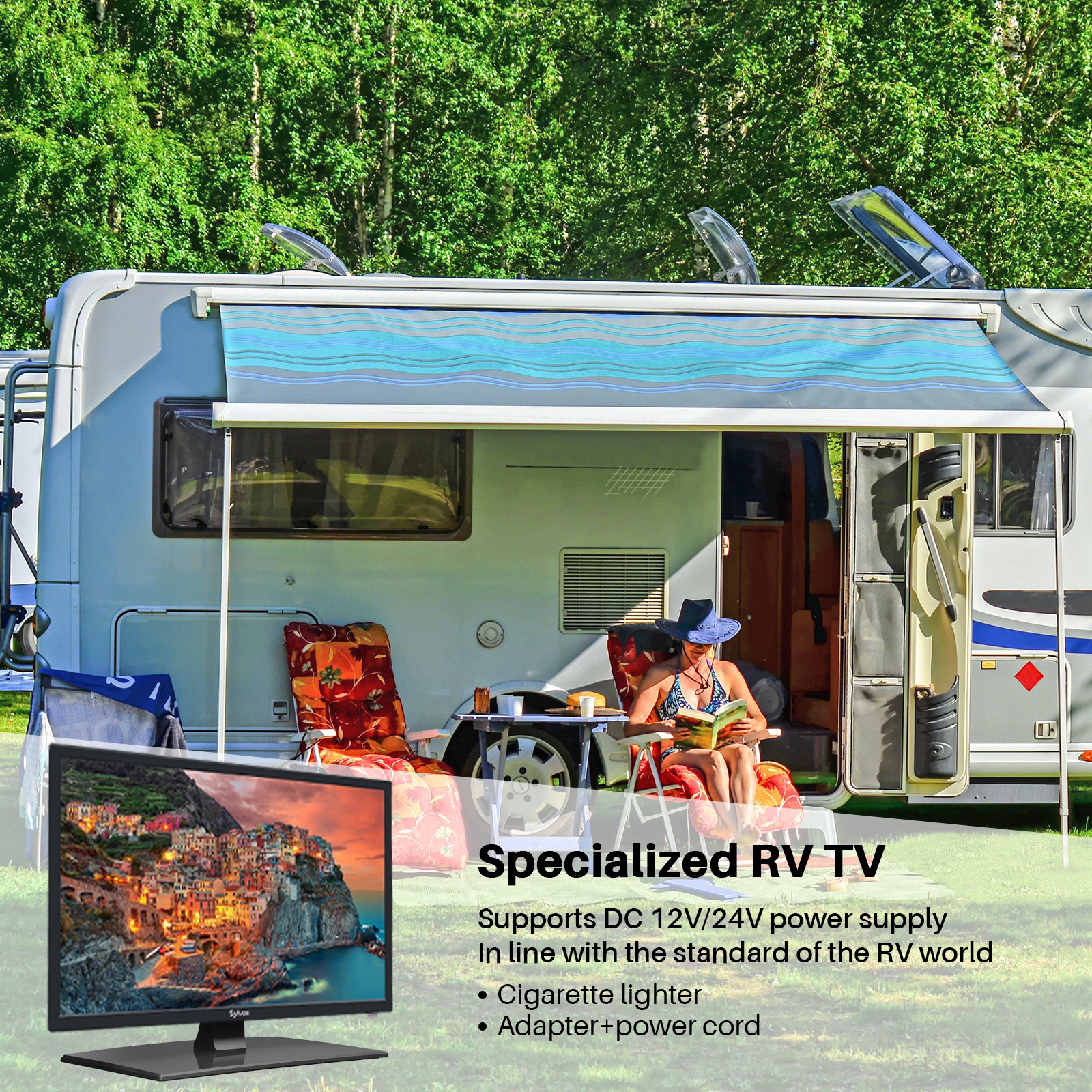 [1080P HD Picture]Full HD LCD screen provides 1920 x 1080 resolution; 250 nit brightness; 3000:1 contrast ratio; 8bit; 16.7M colors. 178°H/178°V ultra-wide viewing angle experience; allowing you to watch TV programs immersively. Sylvox 12V TV give you sharper images and more vibrant colors for every detail you demand.