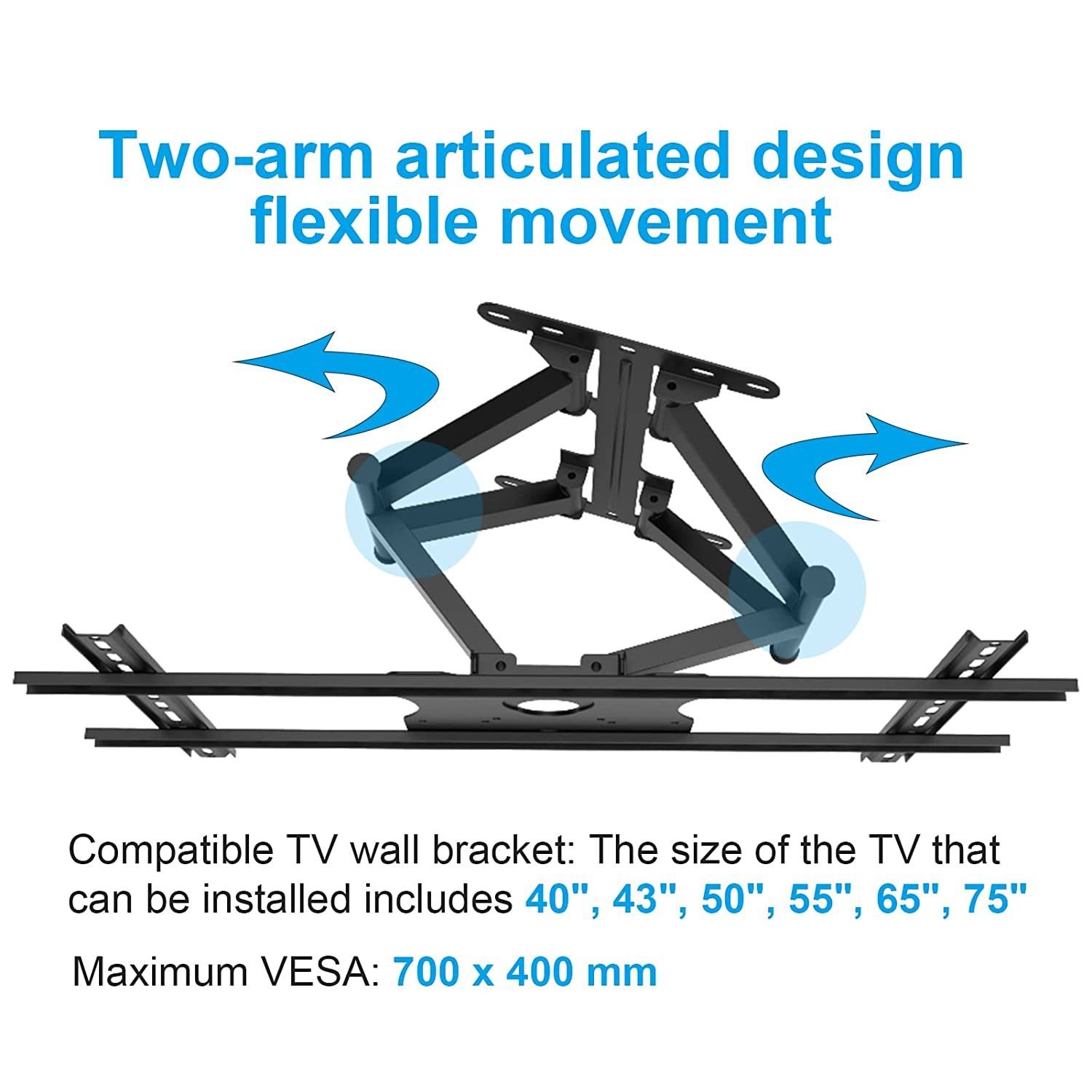 2.[Flexible 6 Articulating Dual Arms] This TV wall mount is built with a dual articulating arm that retracts a mere 1.9 inch properly from the wall for out of the way convenience extends up to a maximum of 19.6 inch from the wall.