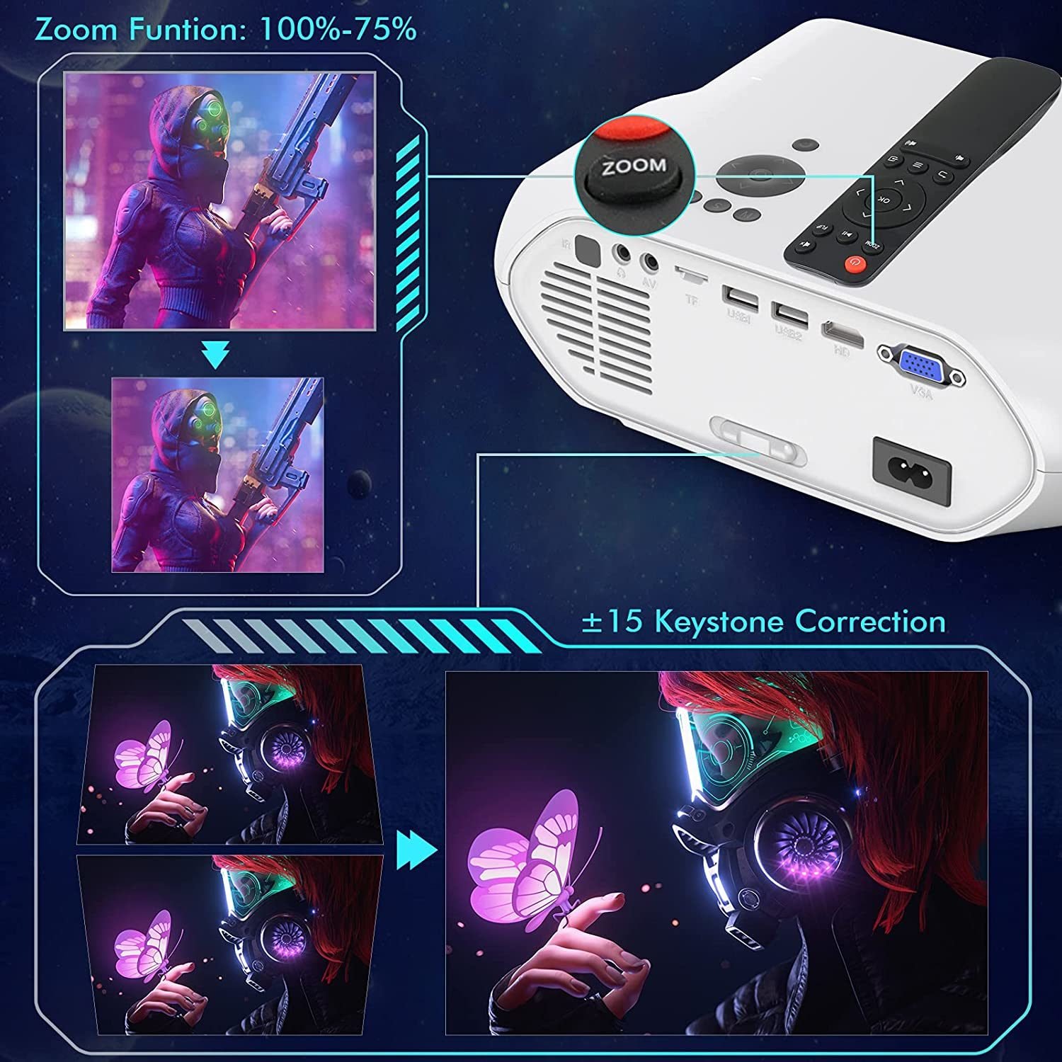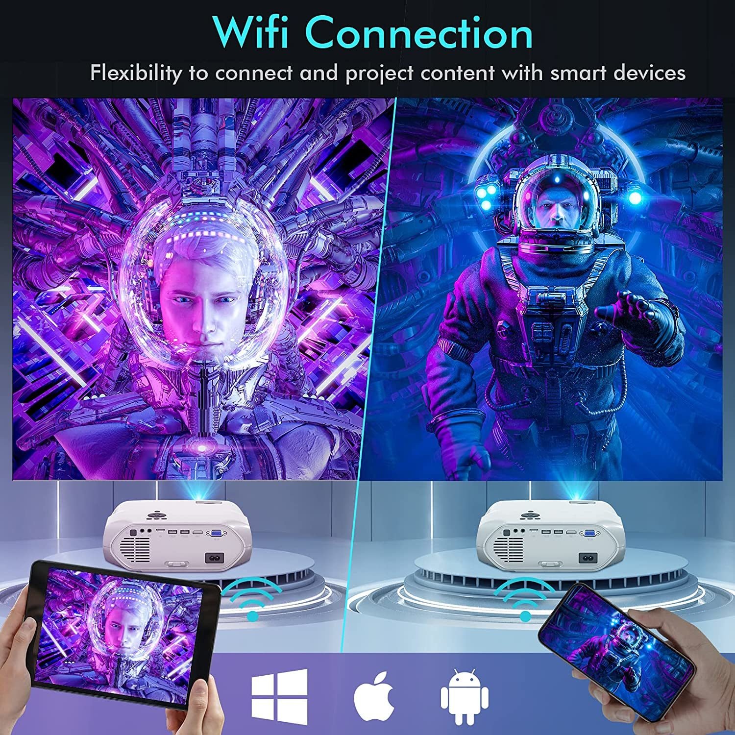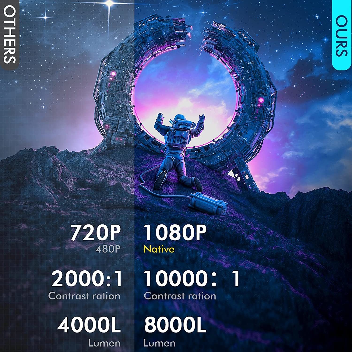 VIDOKA Native 1080P Full HD Video Projector with Wifi and Bluetooth, 8000 Lumen, 10000:1 Contrast Ratio, Home Theater for Movies or Sport!