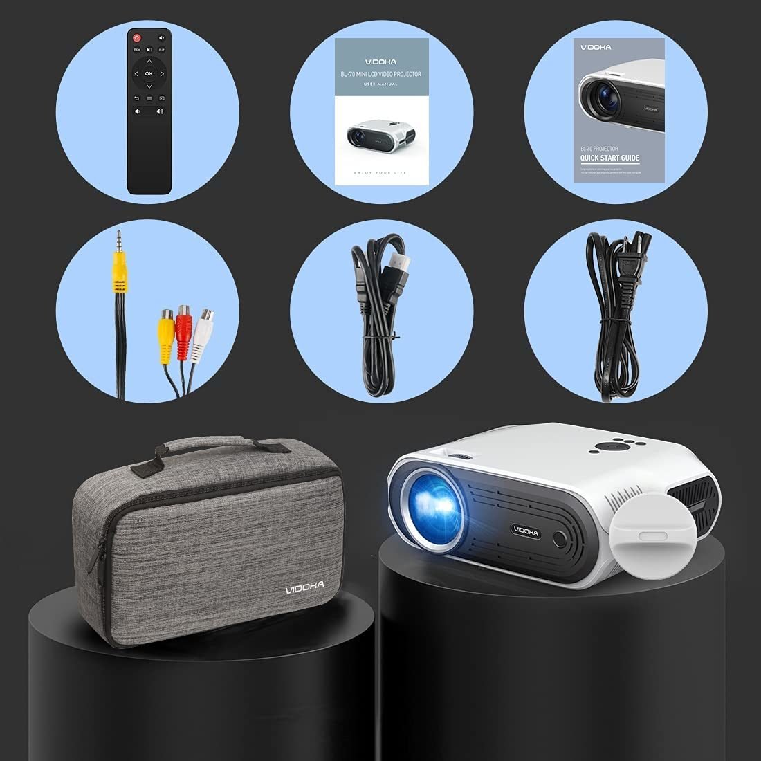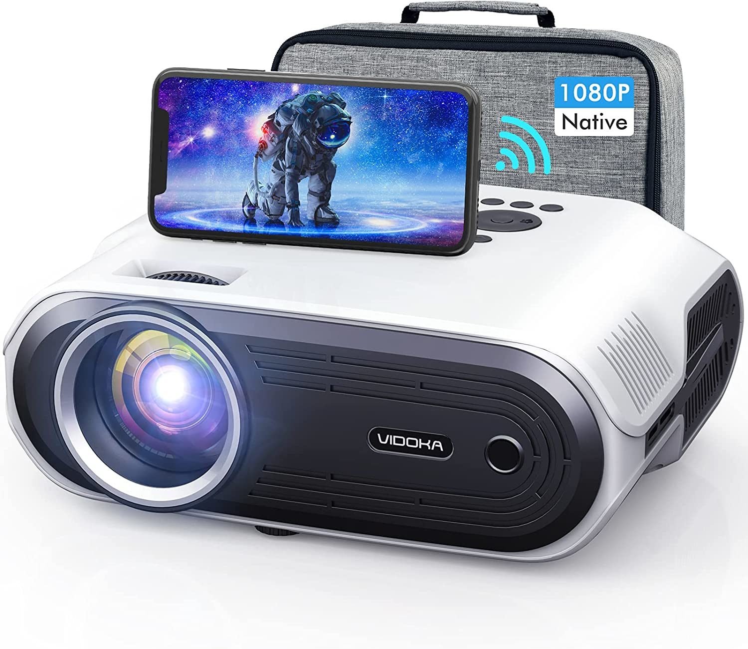 Are you looking for a high-resolution projector for enjoying movies or sports with your friends or family? Then this VIDOKA Native 1080P WiFi Bluetooth Projector is a perfect choice. Real 1920 x 1080 Resolution, 8000 Lumen brightness, 10000:1 dynamic contrast ratio, and Built-in Hi-fi Stereo, with WiFi Mirroring Function and Bluetooth 5.0. It's very suitable for both home theater or small movie nights in the yard.