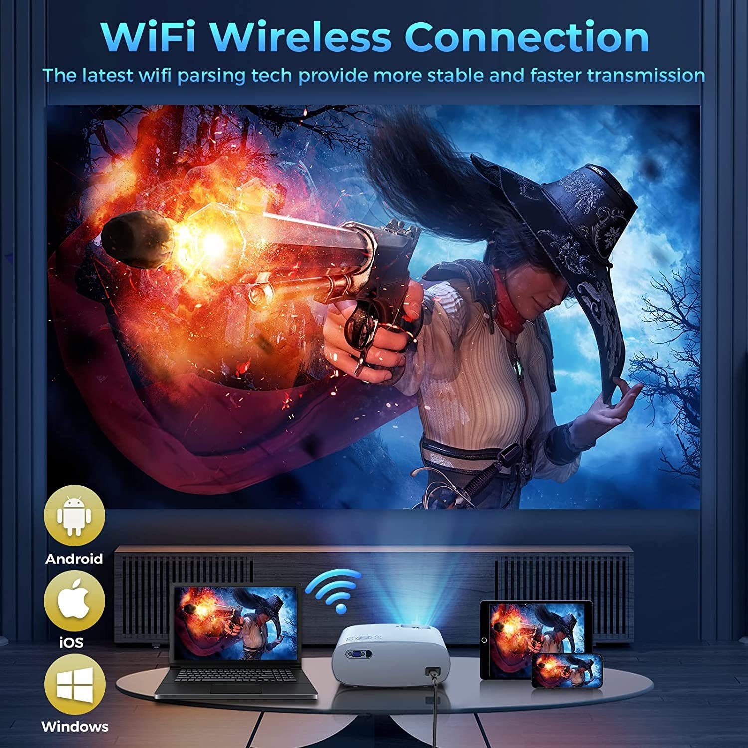 3. WiFi Bluetooth Function:The exclusive wifi mirroring parsing mode allows this phone projector to have stable and fast transmission and enjoy video games and movies. Built-in Bluetooth 5.1 chip, which makes it easy to wirelessly connect your Bluetooth device like headphones, speakers, and other audio devices.